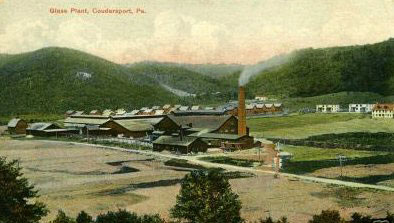 With an abundance of natural gas and rich sandstone and water resources, Coudersport seemed a natural location for glass manufacturing. Two members of the famous Webb family from England, brothers Joseph and H. Fitzroy Webb, opened a glass tile factory in the Mill Creek valley, just east of the business district in an area now referred to as Center Park.